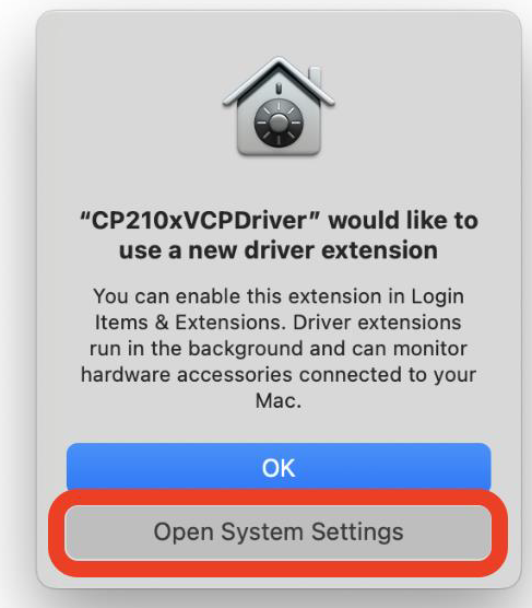 “CP210xVCPDriver would like to use a new driver extension.”