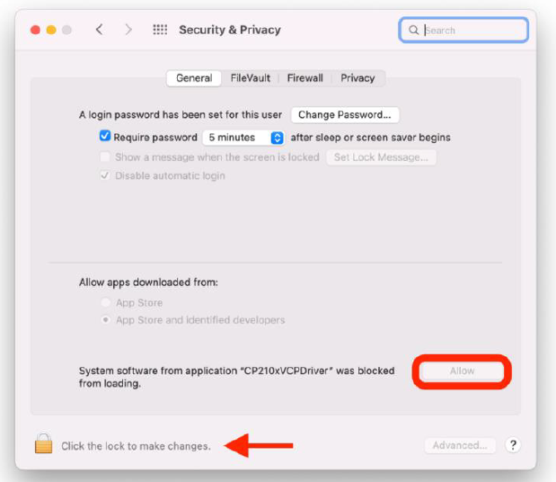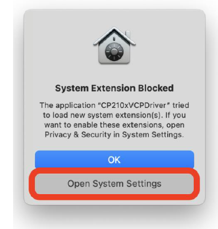 During the Silicon Labs installer, a macOS message will appear: